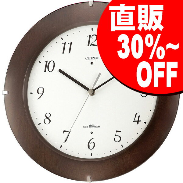 ウォールナット材つき板貼り 電波時計 掛け時計 シンプルで見やすい落ち着いた時計 流れるように静かに動く秒針 電池寿命約2年間【カード決済のみ】シチズン電波掛時計 DR-187