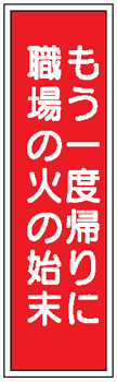 ガラスのように美しい標識板!短冊型標識 もう一度帰りに職場の火の始末363×96 エコポリエステル板製 G68